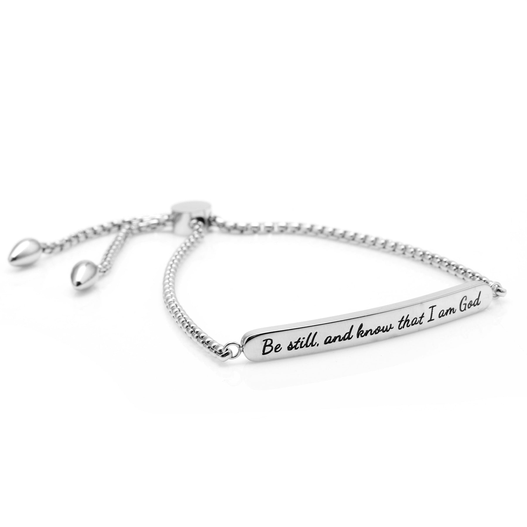 A gentle reminder to rest in faith, the Be Still Scripture Bracelet is designed to bring peace and reassurance in every moment. Engraved with the powerful words “Be still, and know that I am God,” this piece reflects trust, surrender, and quiet strength.