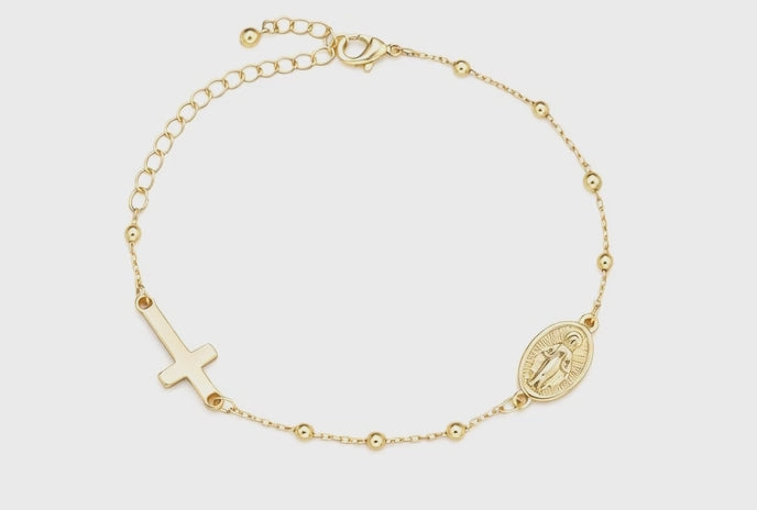 A timeless expression of faith, love, and encouragement. This delicate bracelet features a graceful cross paired with a classic faith medallion, symbolizing God’s protection, strength, and everlasting love. Designed as a meaningful reminder, this piece represents the deep bond between generations and the promise that she is never alone.