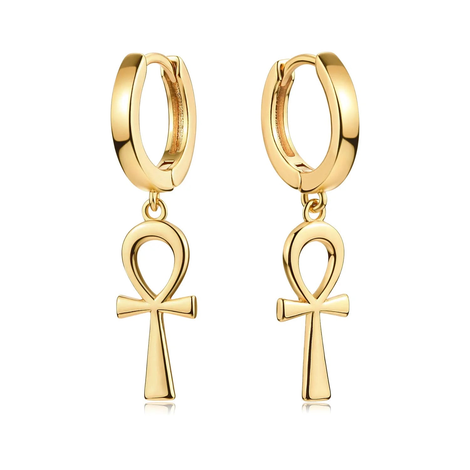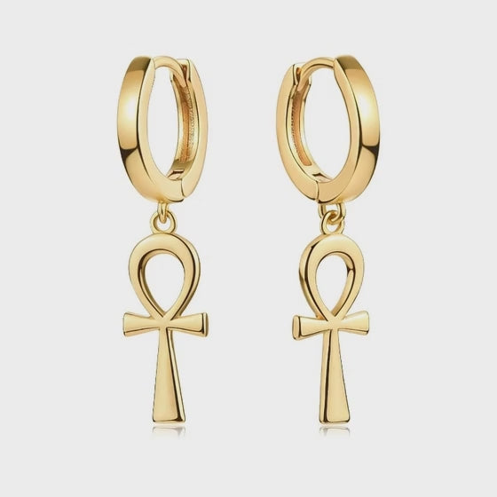 Timeless and symbolic, the Ankh Faith Huggie Earrings blend ancient meaning with modern elegance. Featuring smooth gold-tone huggie hoops paired with a dangling ankh charm, these earrings represent life, faith, and eternal strength.
