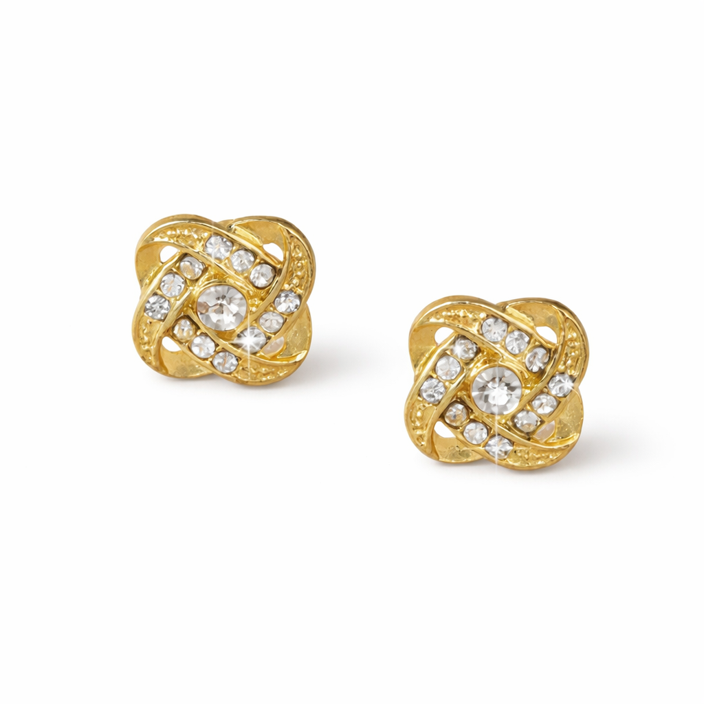 Finished in a warm gold-tone, the knot-inspired silhouette represents unity, eternity, and faith held together through life’s moments. Perfectly sized for everyday wear yet striking enough for special occasions, these studs add a subtle sparkle to any look.