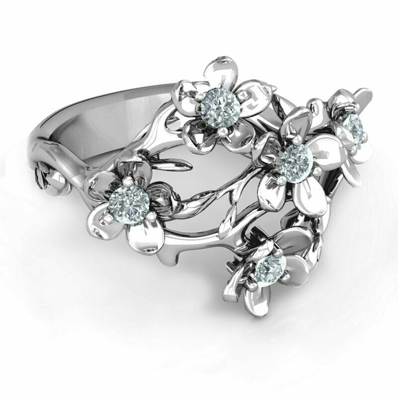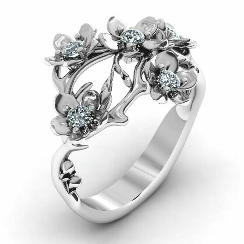Elegant Flower 925 Silver Ring Women Cubic Zircon Wedding Jewelry Sz 6-10