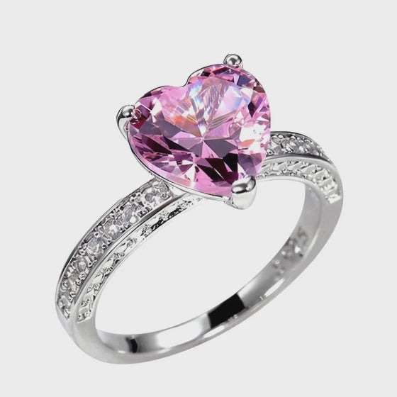 Soft, romantic, and undeniably radiant, the Halo & Haven™ Blush Heart Pavé Ring features a luminous pink heart-cut centerpiece that captures light with every movement. Set in a sleek silver-tone band, the pavé-set stones along the shoulders add delicate sparkle while enhancing the brilliance of the heart-shaped stone.