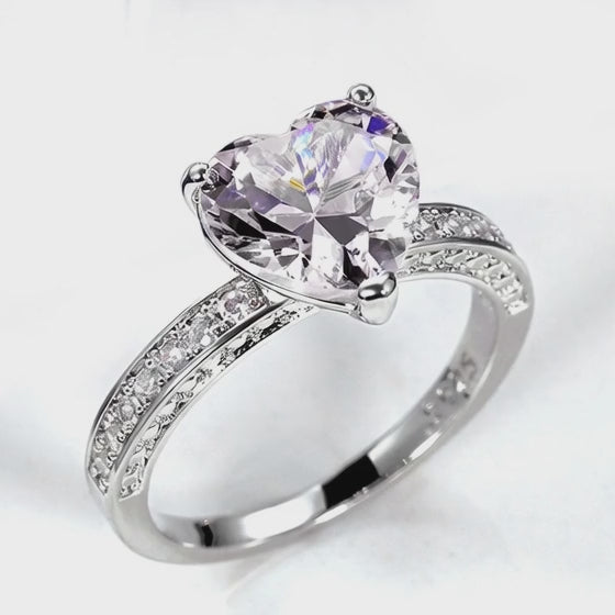 Soft, romantic, and undeniably radiant, the Halo & Haven™ PurpClear Blush Heart Pavé Ring features a luminous pink heart-cut centerpiece that captures light with every movement. Set in a sleek silver-tone band, the pavé-set stones along the shoulders add delicate sparkle while enhancing the brilliance of the heart-shaped stone.